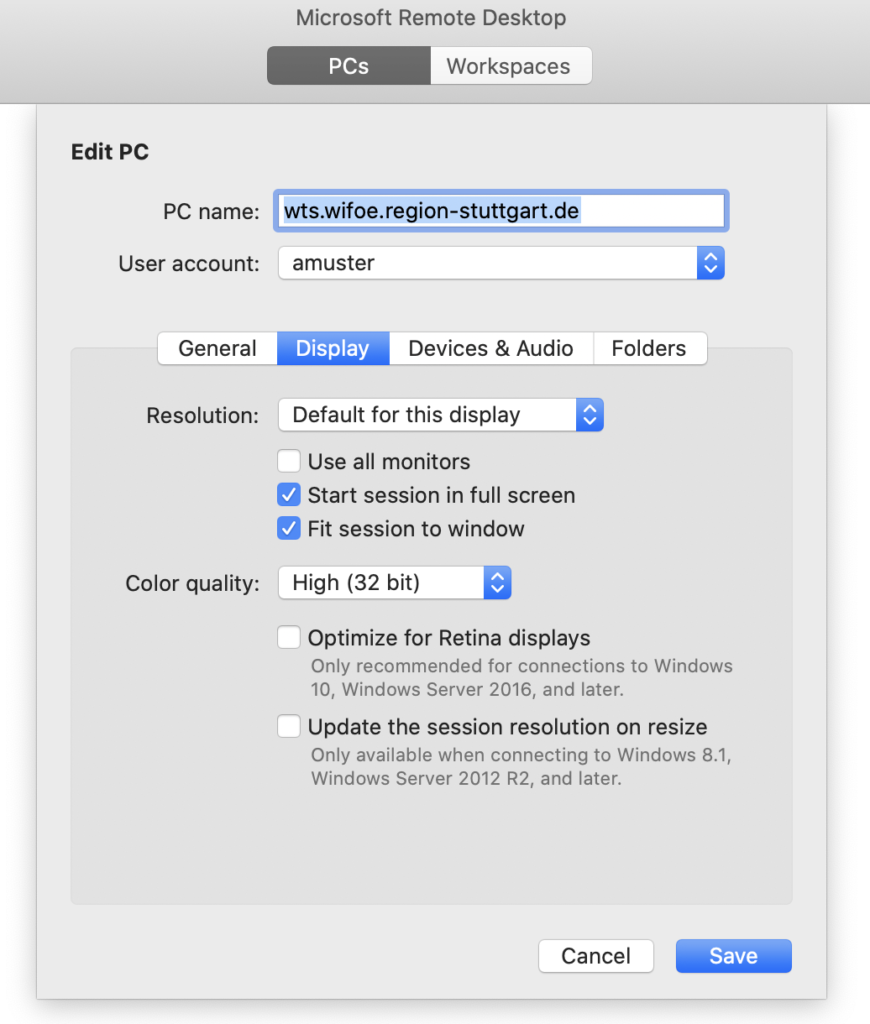 Microsoft Remote Desktop (Terminalserver für Mac)