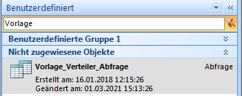 Ist keine passende Abfrage dabei, kannst Du selbst eine erstellen. Hierzu musst Du das Dropdown-Menü auf „Benutzerdefiniert“ stellen und in der Suche nach „Vorlage“ suchen. Die „Vorlage_Verteiler_Abfrage“ darf nicht geändert werden. Um eine neue Abfrage zu erstellen, machst Du einen Rechtsklick auf „Vorlage_Verteiler_Abfrage“ und klickst auf kopieren. Nochmal Rechtsklick und einfügen oder „STRG+V“.