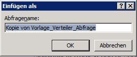Es erscheint folgendes Fenster. Hier benennst Du die Abfrage wohl bedacht. Deine Kolleg:innen sollen nachvollziehen können, wonach gesucht wird. Klicke auf „OK“. Jetzt findest Du Deine Abfrage in der linken Spalte bei den anderen Verteilern.